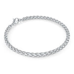 Crafted from durable stainless steel, this 4mm Wheat Link Bracelet offers a refined balance of strength and elegance. Its tightly woven links create a smooth, flexible design that sits comfortably on the wrist, making it...
